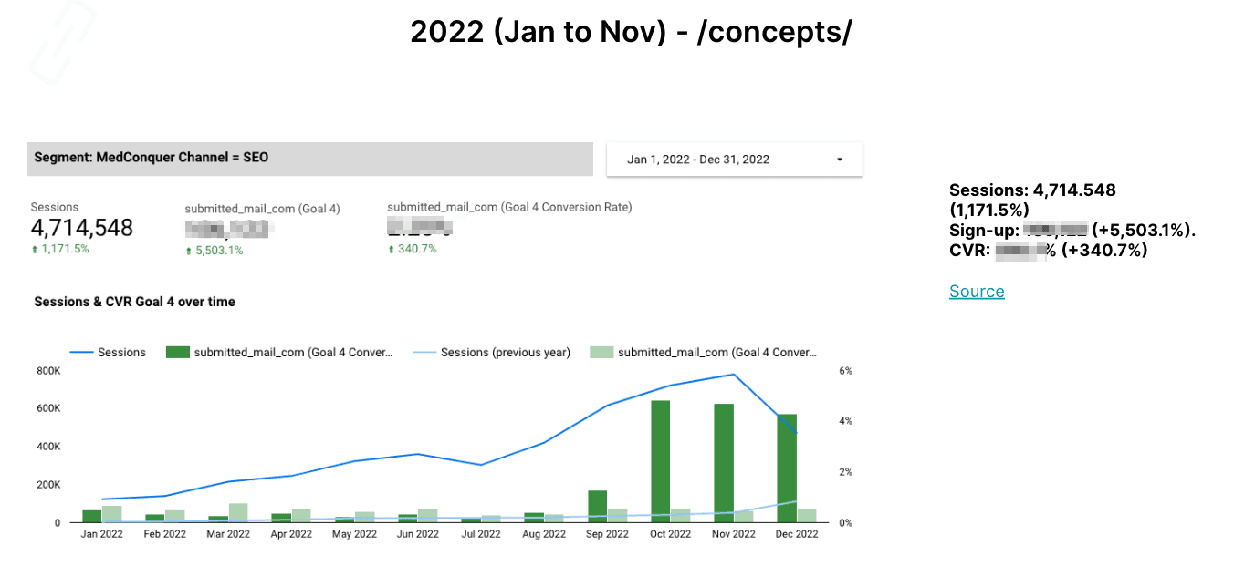 The programmatic SEO approach was a huge success, leading to an additional 4 million sessions in that year only and more than 100,000 sign-ups, and it keep growing YoY.
