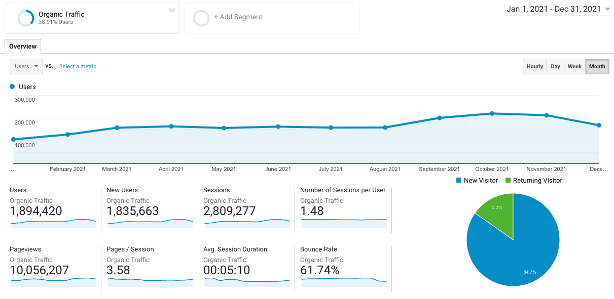 2021: 2,809,227 Organic Sessions (233.88% increase)