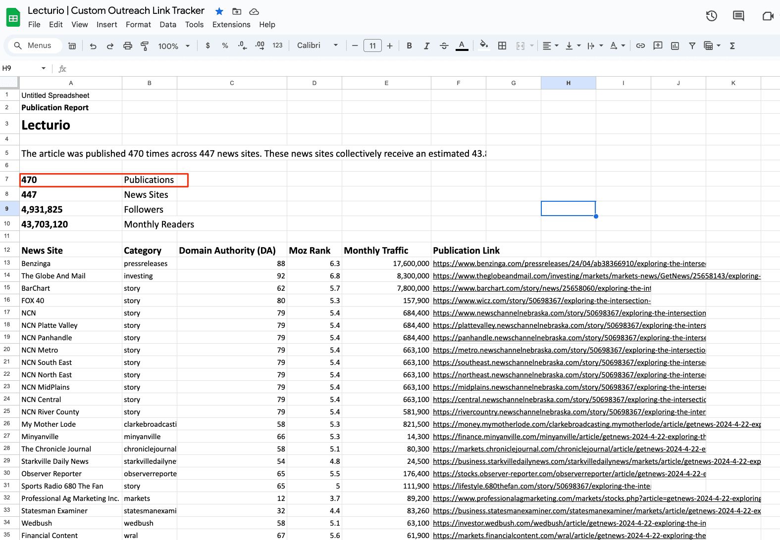 Our campaigns have resulted in more than 450 publication links. High DA sites like Fox, MCN, Benzinga, The Chronicle Journal, and Yahoo News have featured the story.