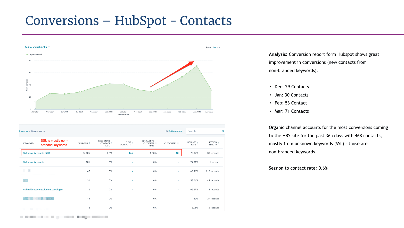 Attribution Issues: HRS lacked clear attribution for SEO’s contribution to their sales pipeline, making it difficult to justify further investment in organic channels.